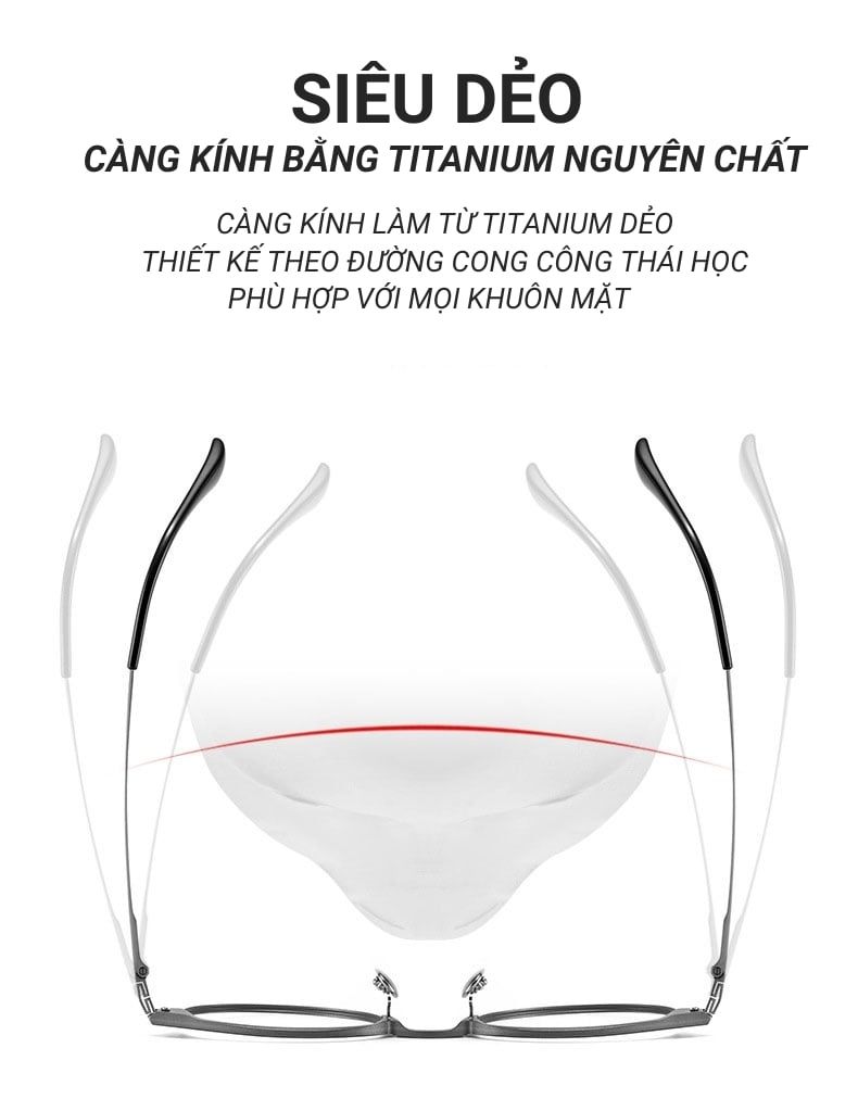Chất liệu gọng: Hợp kim nhôm–magie cao cấp, siêu nhẹ, chống oxy hóa và chịu lực tốt.