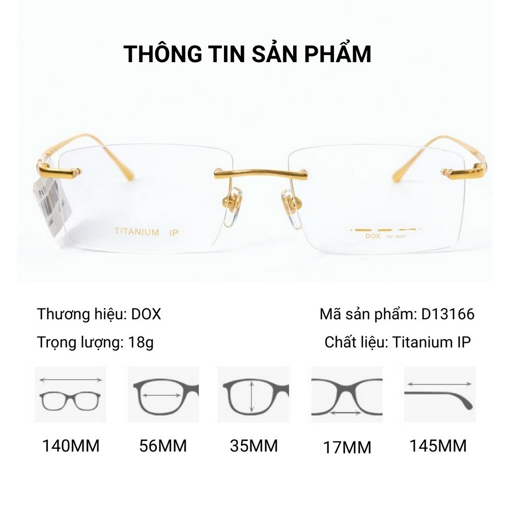 Kính DOX D13166 sở hữu thiết kế không gọng (rimless), giúp loại bỏ những đường viền thô cứng, mang lại tầm nhìn vô cực và sự nhẹ nhàng tuyệt đối cho gương mặt. Kiểu dáng chữ nhật của tròng kính kết hợp cùng càng kính thanh mảnh tạo nên vẻ ngoài tri thức, sang trọng và không bao giờ lỗi mốt.