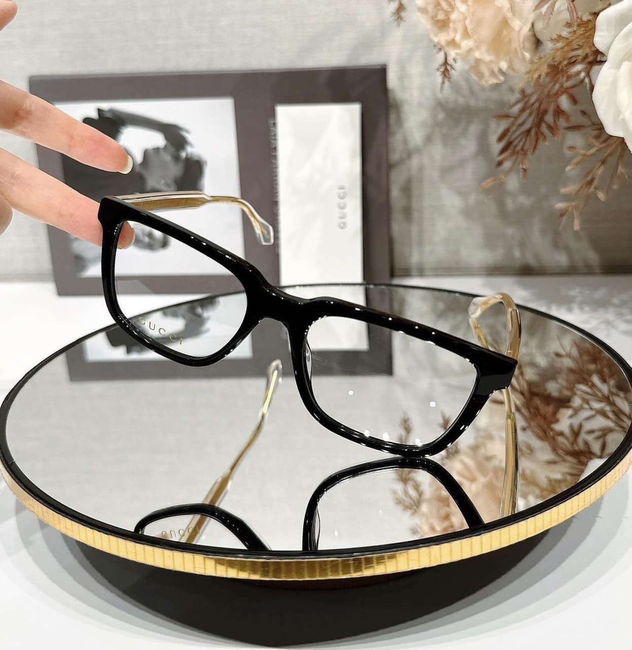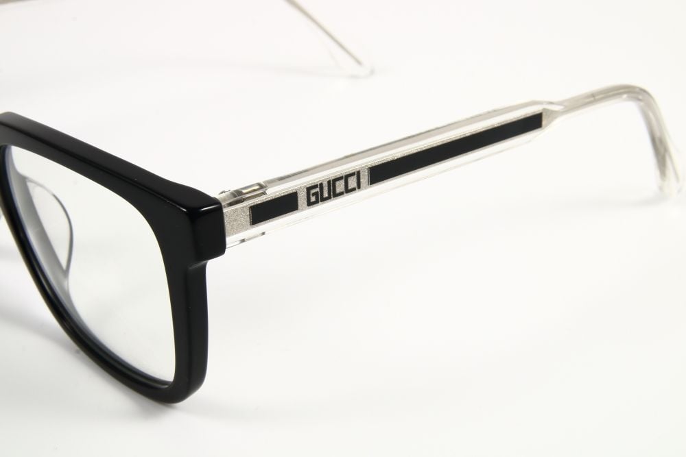 - Gọng kính bằng nhựa Acetate đẹp sáng bóng sắc nét , uốn nắn chỉnh được ,logo thương hiệu dập Gucci , bản lề hợp kim chắc chắn , gập mềm nhẹ