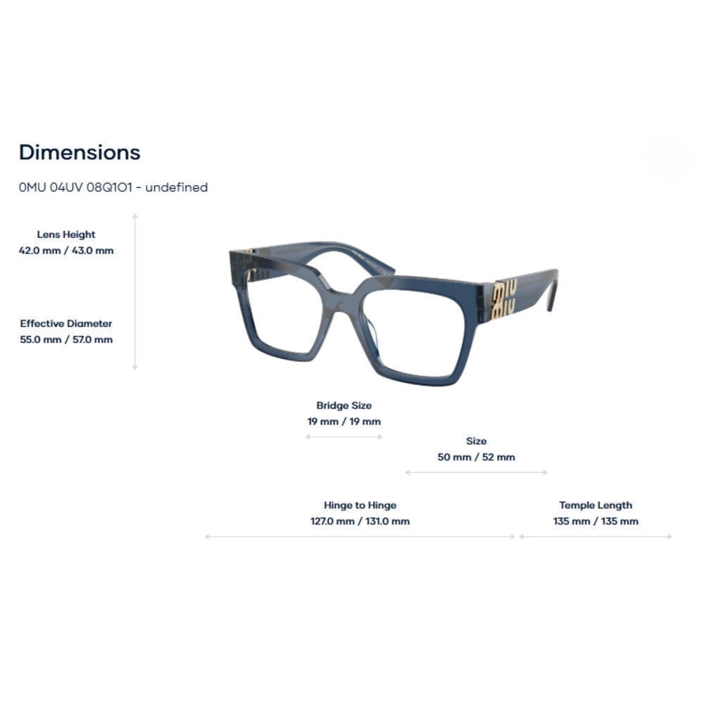 Miu Miu 0MU 04UV được thiết kế theo định hướng progressive friendly, phù hợp cho người có nhu cầu lắp đa tròng hoặc sử dụng kính trong thời gian dài. Form kính cân đối giúp tối ưu tầm nhìn và mang lại cảm giác thoải mái khi đeo.