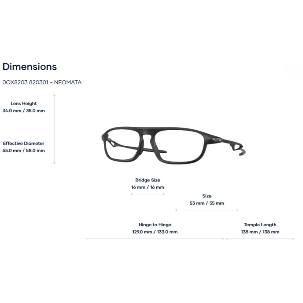 Oakley Neomata 0OX8203 có hai size 53 và 55, giúp người dùng dễ dàng chọn kích thước phù hợp với gương mặt. Thiết kế unisex cho phép cả nam và nữ đều có thể sử dụng linh hoạt.