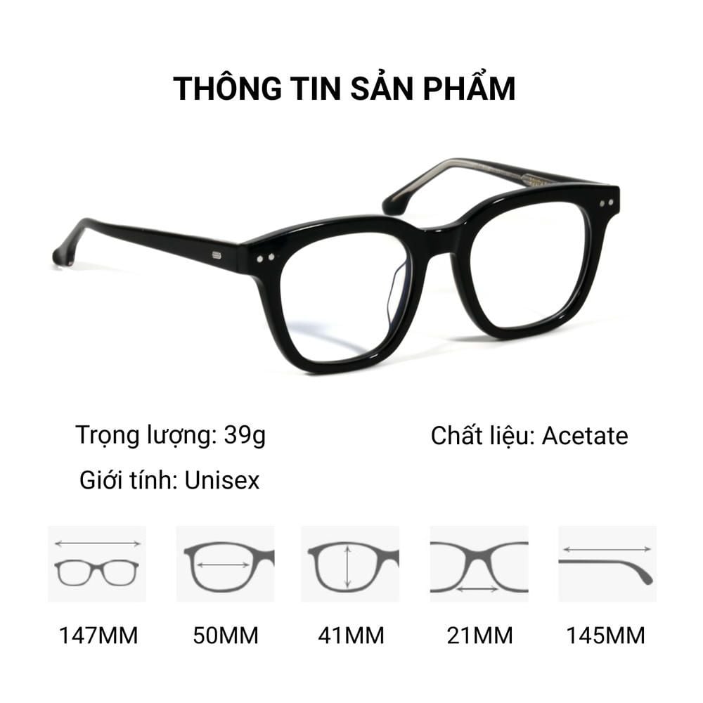 - Gọng kính bằng nhựa Acetate bền chắc, uốn nắn chỉnh được , bản lề hợp kim chắc chắn , gập mềm nhẹ