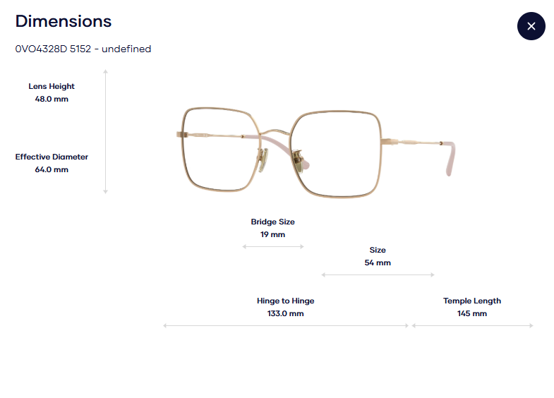 Khoảng cách gọng (Hinge to hinge): 133,0 mm