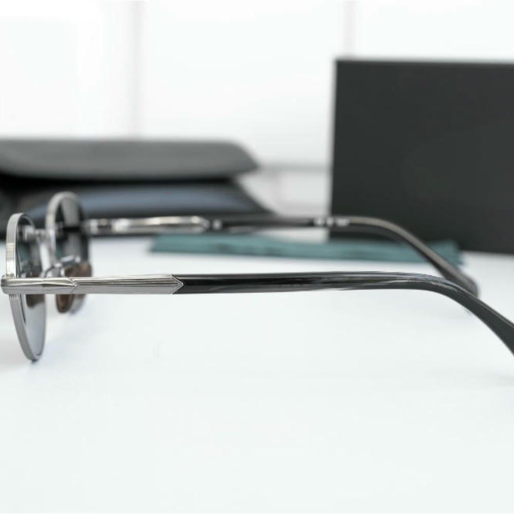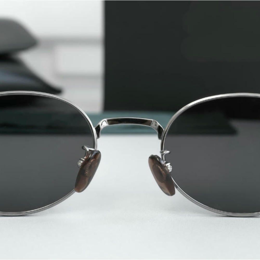 Gọng kính được làm từ kim loại, mang lại vẻ ngoài gọn gàng và cảm giác chắc chắn khi cầm trên tay. Chất liệu này giúp kính giữ form ổn định, đồng thời tạo điểm nhấn sang trọng cho tổng thể thiết kế.