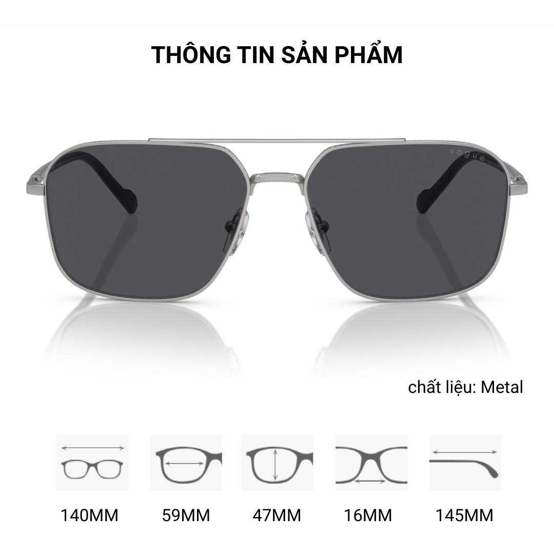 Kính mát Vogue 0VO4289S nổi bật với form irregular đầy mạnh mẽ, tạo dấu ấn khác biệt cho người đeo. Gọng được chế tác từ kim loại cao cấp vừa nhẹ vừa chắc, mang lại cảm giác thoải mái khi sử dụng cả ngày.