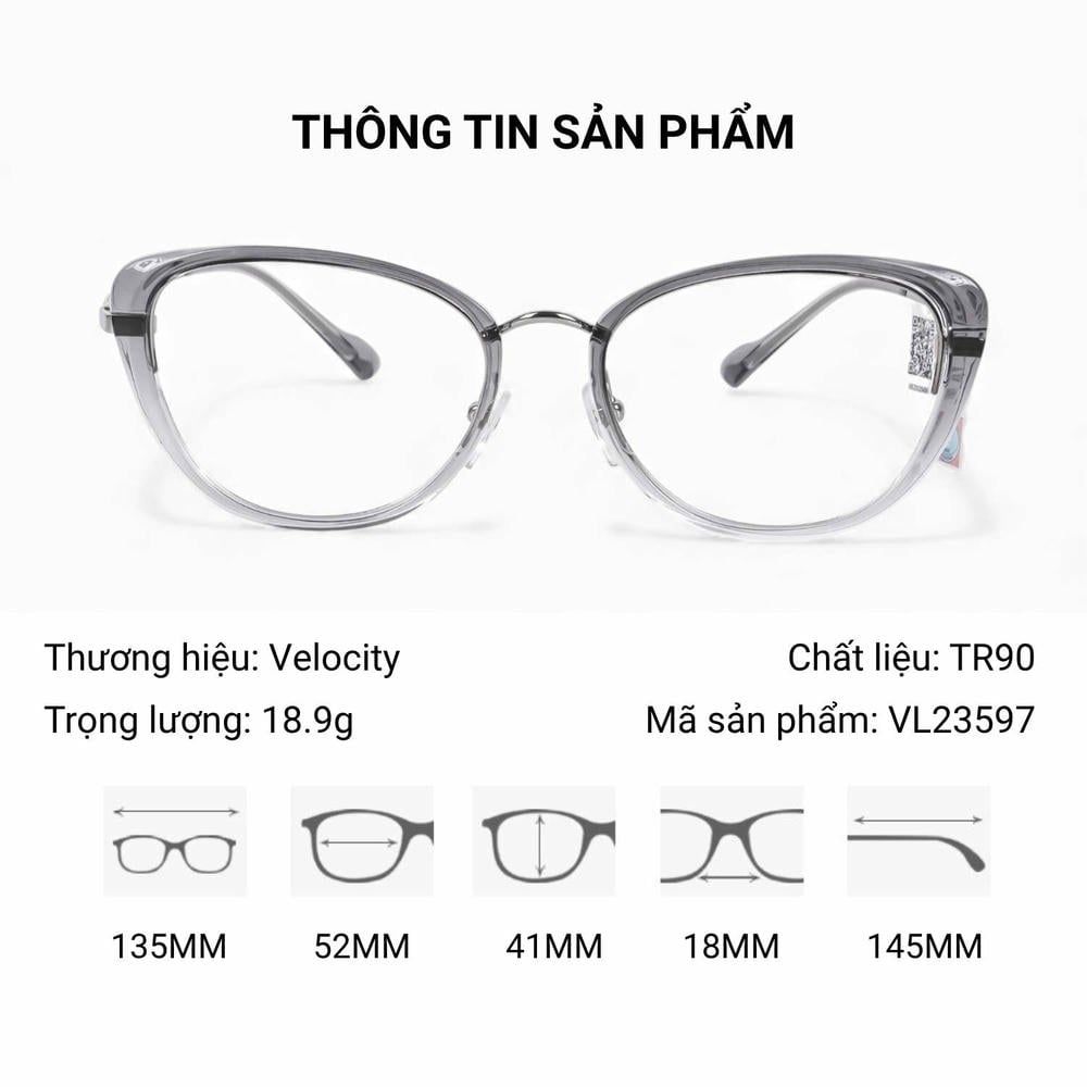 Nếu bạn tìm một mẫu kính vừa đẹp, vừa bền, lại dễ đeo mỗi ngày thì Velocity VL23597 là lựa chọn hoàn hảo. Kiểu dáng mắt mèo tôn nét gương mặt, chất liệu TR90 bền nhẹ và tính linh hoạt trong lắp tròng khiến mẫu kính này phù hợp với nhiều đối tượng và phong cách khác nhau.