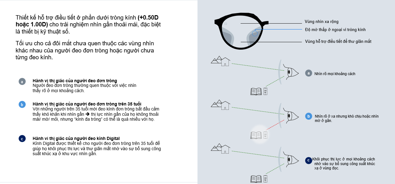 Xóa bỏ hội chứng Digital Eye Strain: Giảm thiểu ngay tình trạng nhức đầu, mỏi mắt và khô mắt vào cuối ngày nhờ vùng nhìn gần được tối ưu tinh tế.