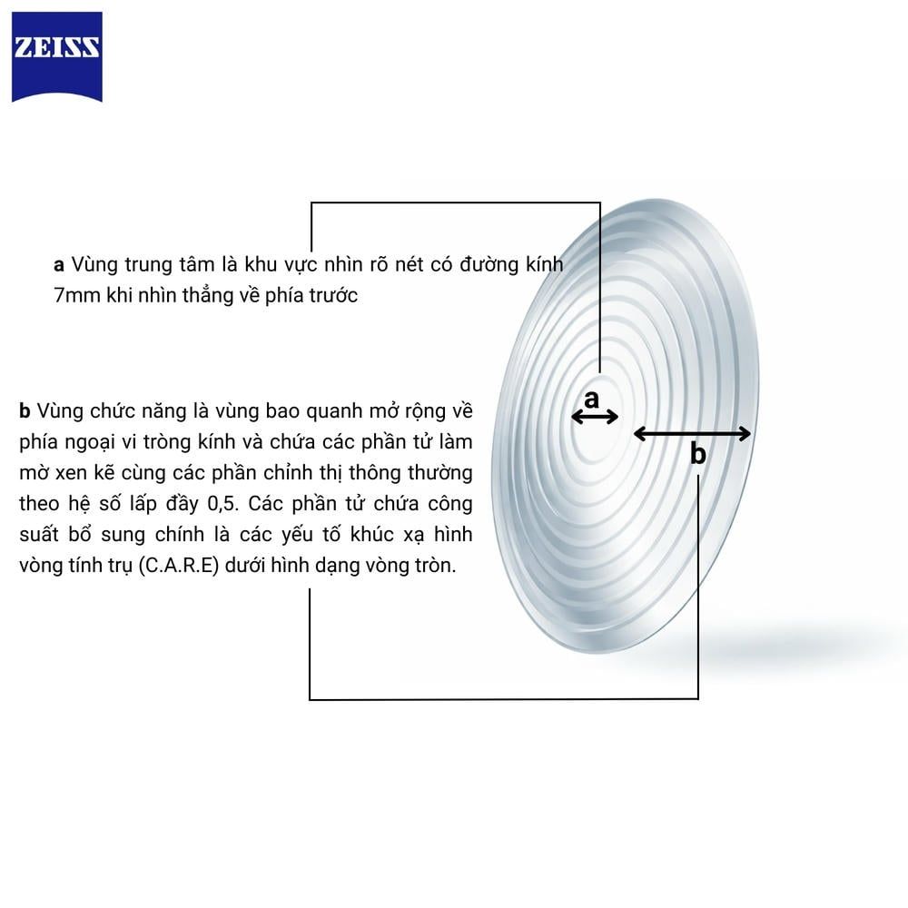 Công nghệ C.A.R.E. (Cylindrical Annular Refractive Elements): Sử dụng các vi thấu kính hình vòng trụ xen kẽ vùng hiệu chỉnh. Thiết kế này tạo ra hiện tượng lệch tiêu cận thị đồng thời, gửi tín hiệu đến não bộ để hạn chế sự kéo dài trục nhãn cầu – "thủ phạm" chính gây tăng độ cận.