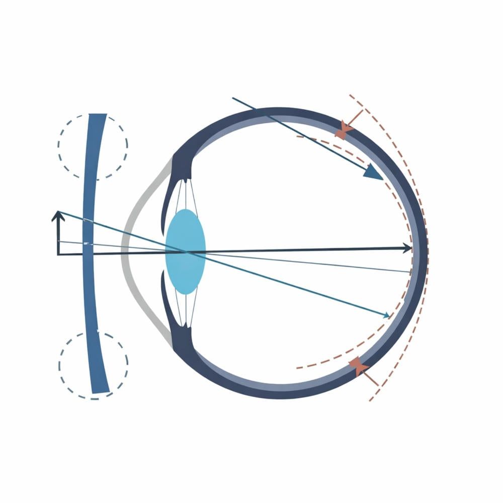 Giải pháp từ Zeiss: MyoVision Pro điều chỉnh hình ảnh vùng ngoại vi hội tụ trước võng mạc. Điều này gửi đi một "tín hiệu dừng" sinh học, giúp kìm hãm sự phát triển quá mức của chiều dài nhãn cầu.